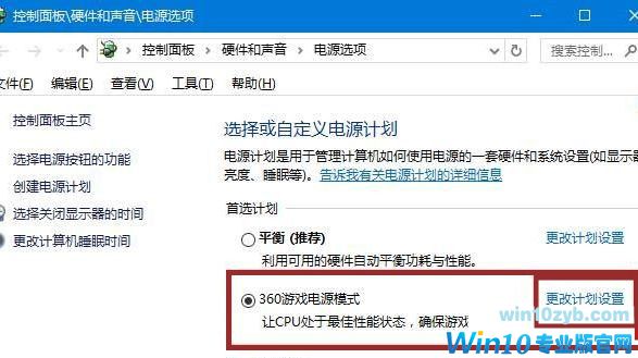 2、在右侧点击在使用的电源计划后面的“更改计划设置”;