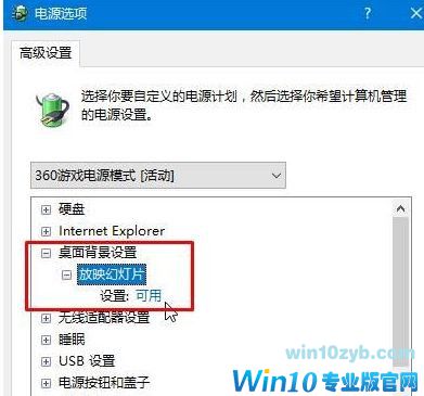 4、 展开“桌面背景设置”—“放映幻灯片”,将“设置”设为启用,点击应用并确定。