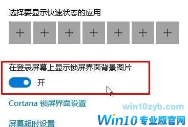 3、在左侧最底部将“再登陆屏幕上显示锁屏界面背景图片”的开关打开。
