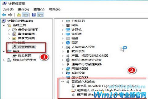 1.首先,右键一下我的电脑,打开“管理”,查看“设备管理器”中“音频输入和输出”下有没有正确识别到你的耳麦。可以打开设备管理器窗口后,插拔一下耳机,查看“音频输入和输出”下是否能正确识别到设备。如果不能正确识别,应该检查设备连接线有没有问题,或者重新安装一下音频驱动;