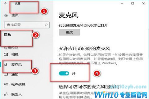 2.然后,点击“开始菜单”图标,打开设置,找到“隐私”下的“麦克风”,确保麦克风设置已经打开了;