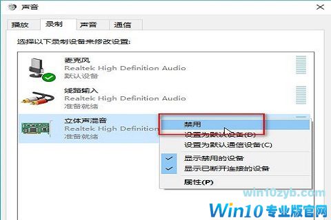 6.点击“立体声混音”,右键一下,选择“禁用”;