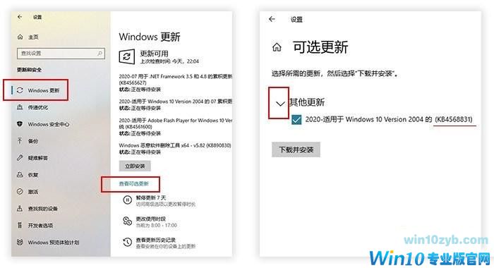 只有安装它后才能开启新菜单。不过由于不是常规更新,我们需要进入 “设置→更新和安全→Windows 更新→查看可选更新”手工下载它。安装完成后,重新启动电脑。