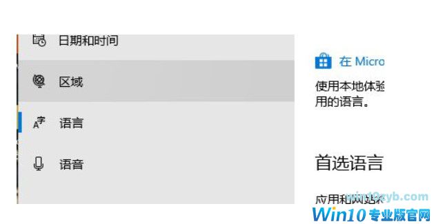 3、、在的时间和语言对话框中点击左边的“区域”。