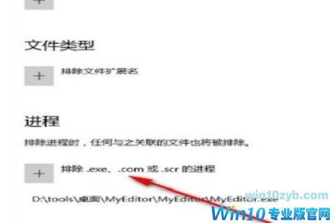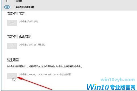 4.点击添加排除项后,在出现界面中选择要添加的白名单文件类型,有文件和流程,点击加号准备添加;