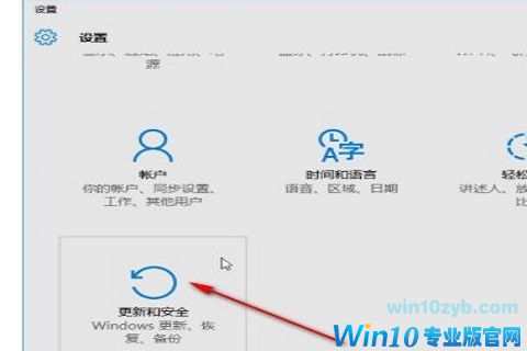 2.打开设置界面后,点击更新与安全选项,进入更新与安全设置模块;