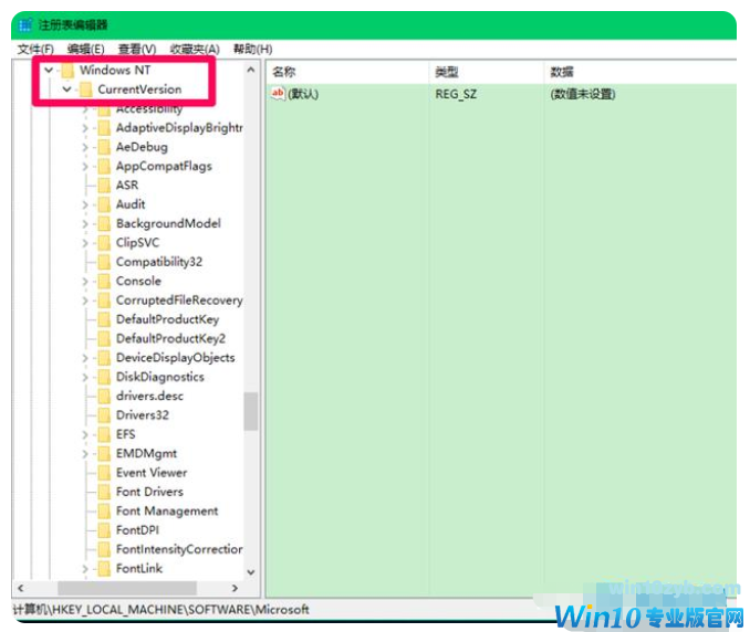 4、接着展开Windows NT/CurrentVersion,进入下一步。