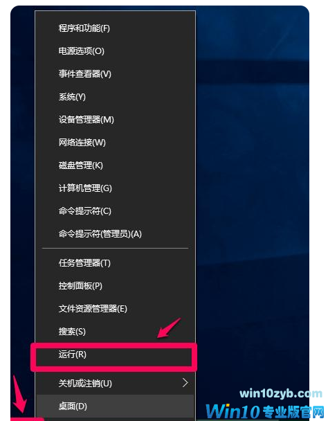 1、win10激活密钥在哪查看呢?首先进入win10系统桌面后,鼠标右键桌面左下角的开始按钮,在弹出的菜单中选择运行选项打开,进入下一步。