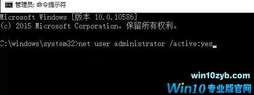 2、在cmd框中键入:netuseradministrator/active:yes按下空格键,重新启动电子计算机;