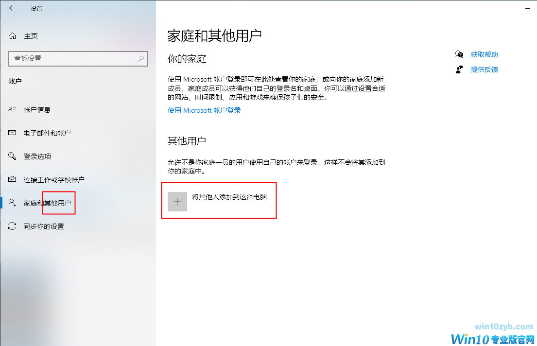 2、点击左边的“别的用户”,随后点击右边的“将别人加上到这台计算机”,按流程新创建一个规范账户就可以;