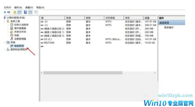 2、开启磁盘管理选项:在管理页面中,开启磁盘管理选项。
