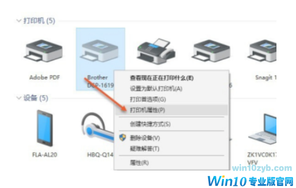 3、一样在操作面板挑选”查询机器设备和打印机“在必须共享的打印机右键单击后挑选”打印机属性(P)“。