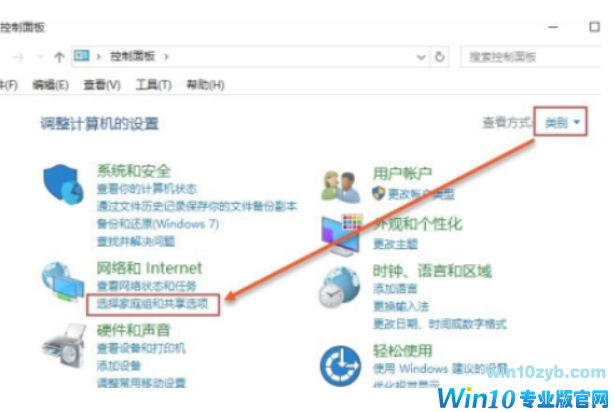1、右键单击”开始“标志——”控制面板“——,以类型方法在”家庭组和网络线互联网“
