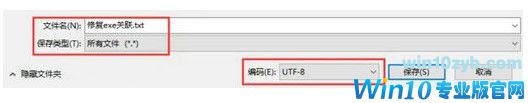 3、将文件另存为,文件后缀名由txt改为reg,储存种类挑选“全部文件”,编码方式挑选“UTF-8”;