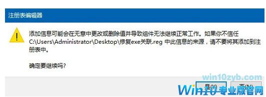 4、双击另存为的reg文件,将信息注入注册表,win10运行不了exe程序的难题就解决了。