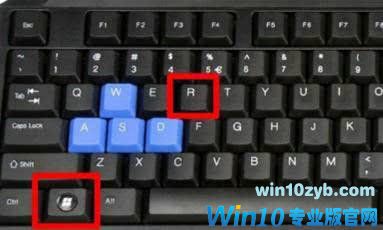 1、同时按住Win10电脑键盘上的“Win”+“R”组合按键,先开启Win10的运行程序。