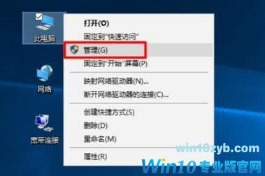 1、找到Win10系统桌面上的“此电脑”标志,然后用鼠标右击“此电脑”——>挑选“管理”,如图所示。先开启Win10的“计算机管理”选项。
