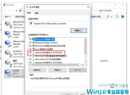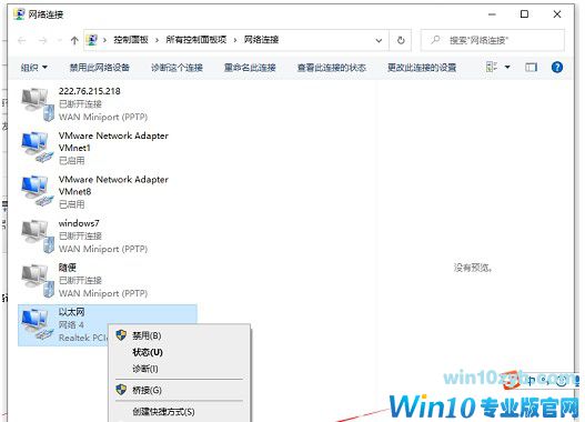 win10客户遇到了无法连接网络网上的状况,经过系统内置工具诊断,原因是wlan无有效ip配置,这种情况要怎么办呢?你先打开网络和Internet设定面板,随后找到更改适配器项进到,以后选定准备使用的网络,打开它的属性窗口,查验一下internet协议版本4是否勾选,没有的话勾选一下就可解决问题了。