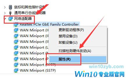 3、之后去点击“网络适配器”,找到下列程序,右键“属性”。