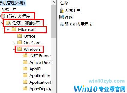 2.然后依次展开“任务计划程序->Microsoft—>windows”。