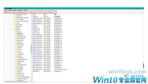 第三步,随后系统就会弹出注册表编辑器的窗口了,在此界面的左边,大家进入到【HKEY_CURRENT_USER\SOFTWARE\Microsoft\Windows\CurrentVersion\Explorer\Advanced】途径中去。
