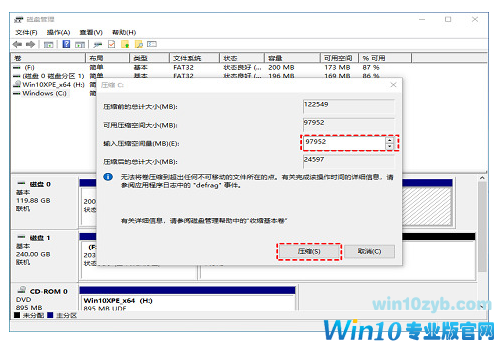 2、随后右键选择要压缩的C盘,并在“输入压缩空间量”内填写想要的内存,填写完毕后点压缩;