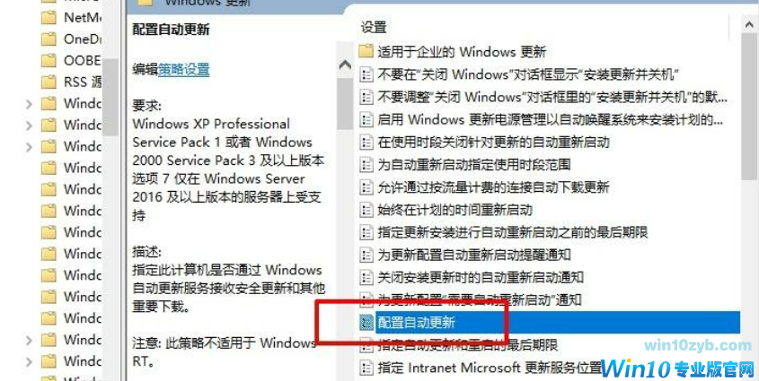 2、 在计算机配置->管理模板->windows组件->windows更新->配置自动更新为禁用。
