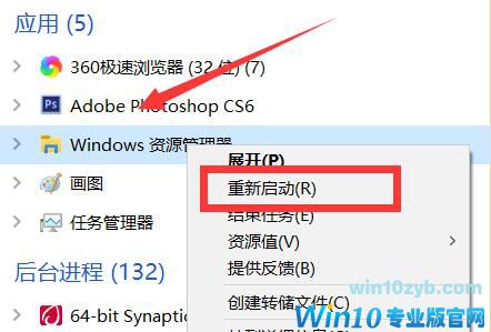 2、然后寻找任务管理器,鼠标右键“重启”就可以。