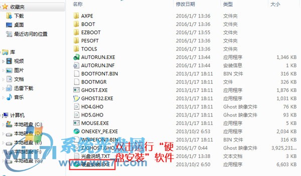 4,进入解压文件夹后,双击运行“硬盘安装”软件,如下图所示。