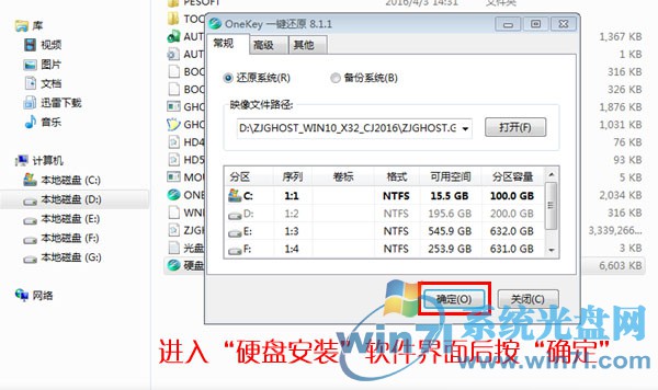 5,进入“硬盘安装”界面后按“确定”,如下图所示。