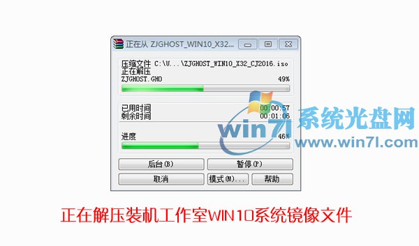 2,正在解压装机工作室WIN10的镜像文件,如下图所示