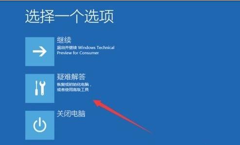 1、你在登陆界面 接Shift+重启 进入选择一个选项,选择【疑难解答】。