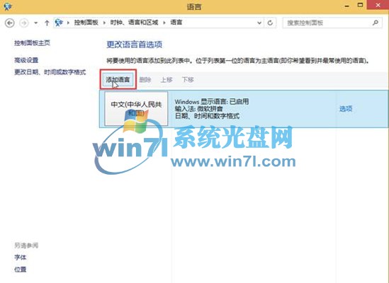 3.在打开的语言窗口中,点击“添加语言”进入下一步操作。如下图所示