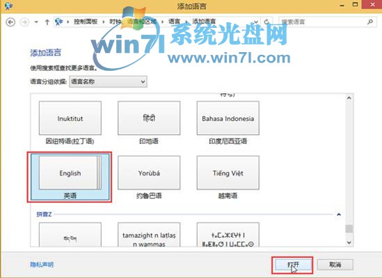 4.选择好你所想要添加的语言,点击“打开”进入下一步操作。如下图所示