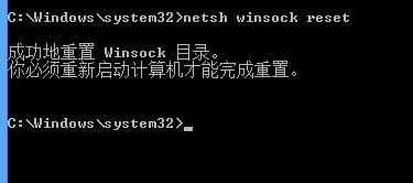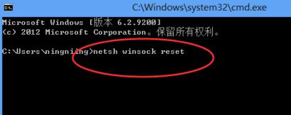 2进入命令行界面,输入 netsh winsock reset 命令,点击确定