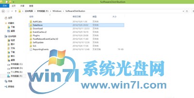 2、关闭后我们就要删除临时更新文件 进入c:\Windows\SoftwareDistribution (c是系统盘),删除datastore 里所有的文件。如果想清楚已下载更新的话,就要清楚download 文件里的所有。