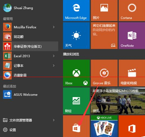 1、安装过程非常简单,打开Windows应用商店,图标默认在左下角工具栏,如图所示,或者打开开始菜单点击“应用商店”。