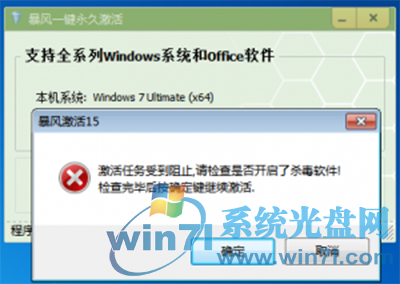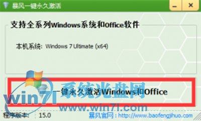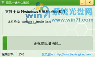 第三步:关闭杀毒软件后点击(一键永久激活Windows和office)这个按钮进行激活,暴风激活工具开始进行系统或Office软件的激活!请各位用户耐心等待几秒钟时间!