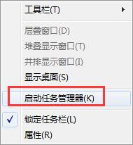 1、右键点击任务栏,选择“启动任务管理器”。