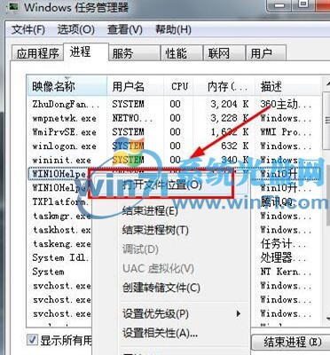 2、找到win10helpe.exe,然后选择“打开文件位置”,打开之后,找到win10helpe.exe直接删除掉即可。