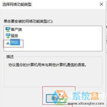 4、选择协议;点击添加;