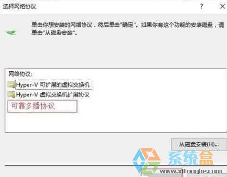 5、选择“可靠多播协议点击确定,由于小编的已经试过了,所以截图没有这个选项,这里我打字在图上的,试试你的网络好没有,没有请看下一个;