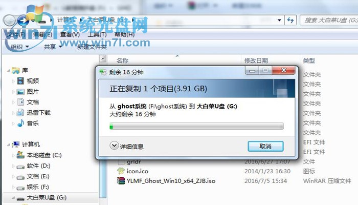 1、把win10 64位系统镜像包拷贝到大白菜u盘中。