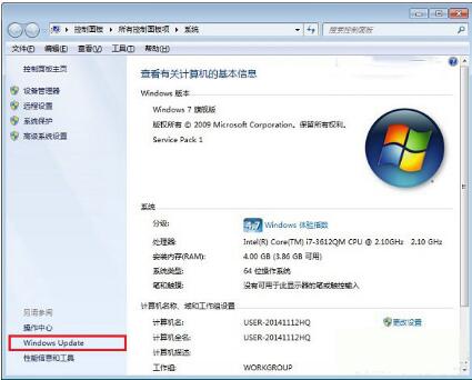 一、在Win7或者Win8电脑桌面中的“计算机”或者“这台电脑”上右键,然后点击“属性”。在打开的系统界面中,点击进入左下角的“Windows Update”,如下图所示。