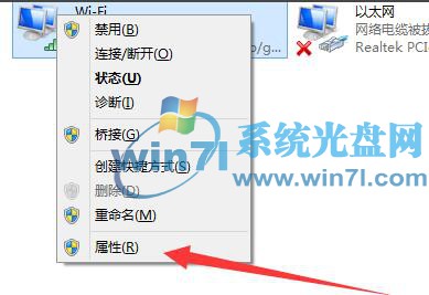 3、进入网络列表,找到当前的网络连接,右击它,选择“属性”。