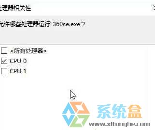 3、在“处理器相关”界面勾选指定CPU ,点击确定即可。(默认是勾选所有处理器的,如果你觉得该程序过于消耗资源,可以只勾选一个)