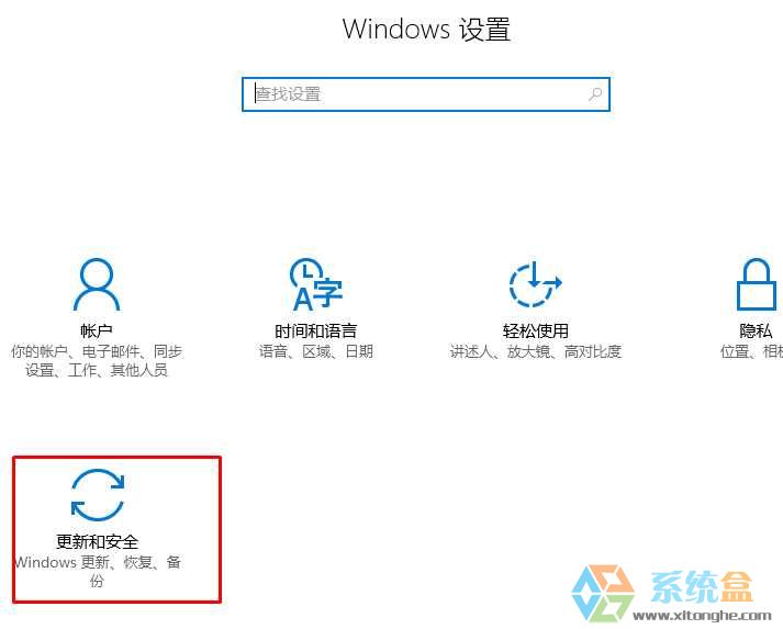 2、点击 更新和安全 如下图: