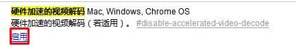 4、在地址栏中输入:chrome://flags/#disable-accelerated-video-decode 打开【 硬件加速的视频解码 】;