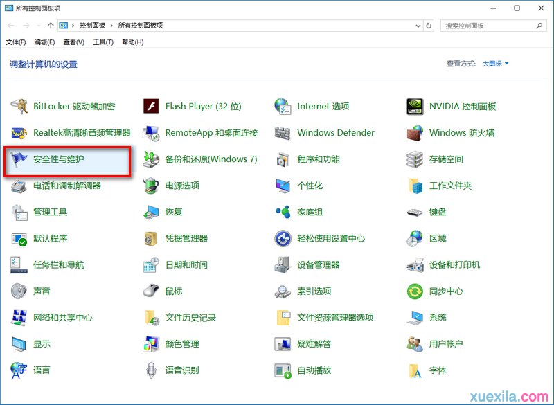 打开控制面板后左上角有个查看方式,选择大图标;如图所示;