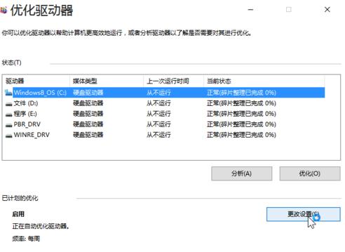 4、win10的“优化驱动器”即win7时代的磁盘碎片整理,每两三个月做一次即可,每周计划运行实属对资源的浪费。